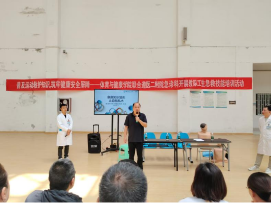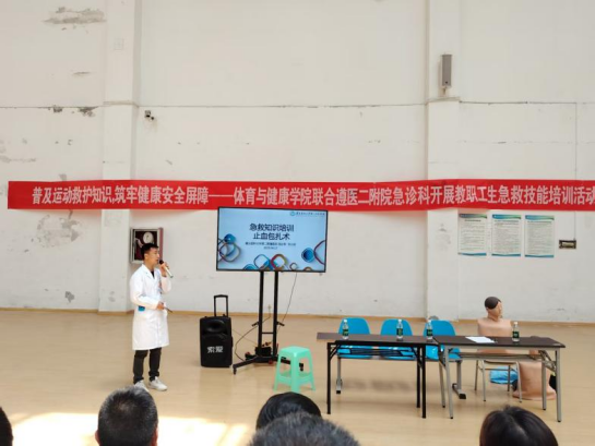 为深入贯彻落实“健康中国”战略,提升师生应急救护能力,筑牢校园健康安全防线,近日,FUN88乐天使联合公司第二附属医院急诊科,共同举办了以“普及运动救护知识,筑牢健康安全屏障”为主题的急救技能培训活动。本次活动吸引了学院师生及后勤保障人员近百人参与,通过理论与实践结合的方式,系统普及了心肺复苏、止血包扎及自动体外除颤器(AED)使用等关键急救技能。
