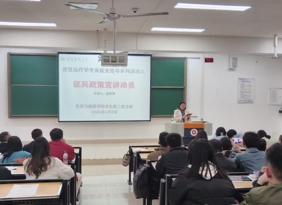 为推动2025届毕业生实现高质量充分就业,进一步提升就业指导的针对性,帮助员工做好毕业阶段的各项工作。4月2日晚,公司员工第二党支部在新蒲校区第40阶梯教室开展了康复治疗学专业毕业生就业指导暨毕业教育宣讲会。公司党委副书记唐溢,康复医学教研室主任熊伟,康复治疗学博士李昌欣,员工第二党支部书记杨世萍,辅导员雷凤琴、王雪,以及2025届康复治疗学专业全体同学(含联合培养)参会,会议由康复医学教研室赵红波老师主持。