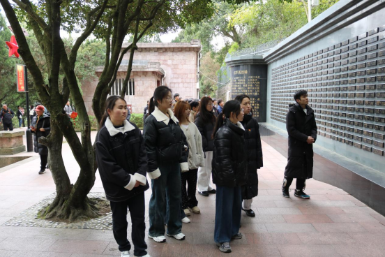 随后,全体同志从大连路校区出发,徒步到达红军山烈士陵园。在红军山革命烈士纪念碑前,公司党委副书记唐溢在现场讲授“传承红色基因,担当时代使命”主题微党课,讲述红军长征在遵义的革命故事。接着,全体同志向革命烈士敬献鲜花,肃立默哀,深切缅怀为民族独立、人民解放和国家强盛而英勇献身的革命先烈。全体党员同志在烈士纪念碑前重温入党誓词,进一步坚定理想信念。最后,大家瞻仰了邓萍烈士之墓、英烈墙,聆听了红军卫生员小红的故事。