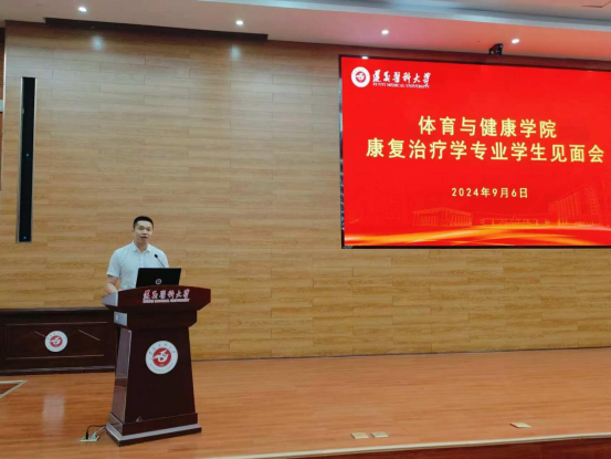 会上,熊伟主任介绍了公司康复治疗学专业的招生情况和历年发展,指出随着社会需求的增加和医学模式的转变,康复治疗学专业将会有更好的发展机遇,呼吁全体同学向着“为人民的健康保驾护航”这一目标努力。