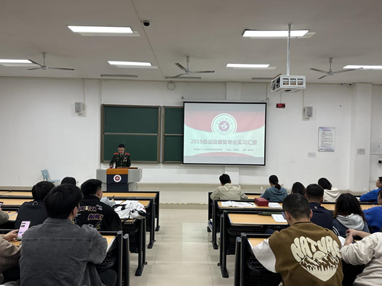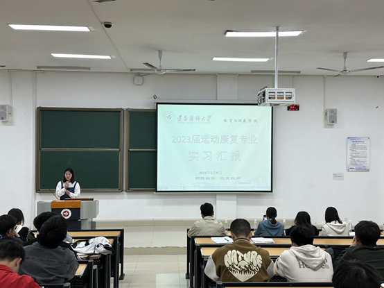 为培养运动康复专业应用型人才,夯实专业基础,提高专业技能,按照教学培养计划,2019级运动康复专业员工于2022年7月至2023年4月进行了为期10个月的实习工作。为进一步了解实习成效,2023年5月8日,2019级运动康复专业实习汇报会在第四教学楼35阶顺利召开。运动康复专业2019级全体实习生、2020级全体同学参加了汇报会,FUN88乐天使副经理黄涛、党委副书记唐溢、运动康复教研室主任张婕、运动康复教研室副主任王兰、喻梅、涂世利、黄茜蓝等老师出席会议。