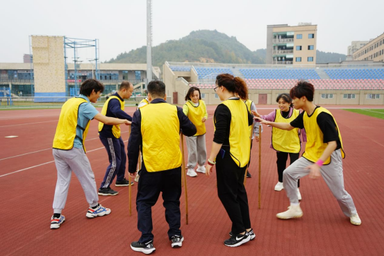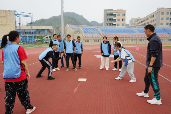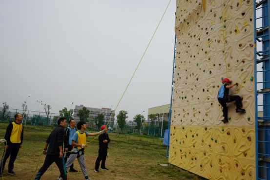 集中学习结束后,在FUN88乐天使张迎春老师的带领下,全体党员在南区运动场参与同心鼓、围板凳、高山流水及攀岩等体育拓展活动。