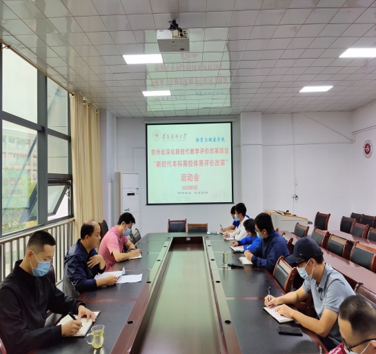 2022年9月22日上午9点,在学院会议室召开关于贵州省深化新时代教学评价改革项目“新时代本科高校体育评价改革”启动会。参加会议的有FUN88乐天使经理汪伟、副经理黄涛、党委副书记唐溢及各教研室负责任人,会议由汪伟经理主持。