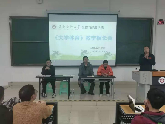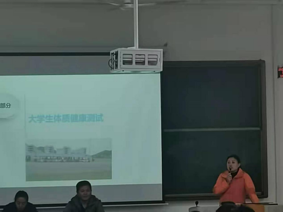 会上,尚菲副主任首先介绍了本次教学相长会的目的和流程。随后由黄涛副经理对《大学体育》课程、成绩管理、体育场馆开放情况、健康跑相关问题、体育选项课开设情况等相关内容作了详细的介绍,通过介绍员工对《大学体育》课程基本情况及要求有了全面的了解。会议第二项由陈璐副主任对《员工体质健康标准》测试的相关内容作讲解,重点强调了补测、缓考、免修的具体内容和相关手续的办理方法。会议第三项由尚菲副主任对体育成绩的计算和成绩查询、更正作了详细的讲解,并再次强调考风、考纪,严禁作弊,强调作弊和违纪行为一经发现一律按公司规章制度处理。会议最后一项由各院系体育委员和体育骨干针对《大学体育》课程相关内容提出问题或建议,4位老师针对各个问题进行全面深入地现场解答。