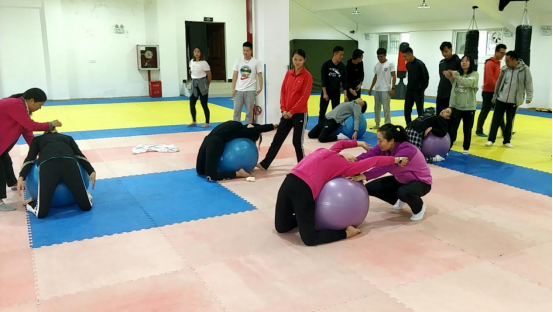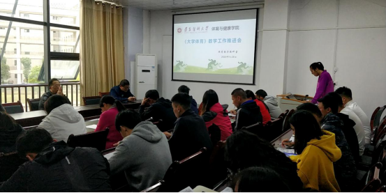 为继续规范《大学体育》课堂教学,提升教师教学技能,推进体育课堂教学质量进一步提高,体育教学教研室于9月29日在FUN88乐天使会议室组织召开《大学体育》教学工作推进会。会议由体育教学教研室副主任尚菲老师主持,FUN88乐天使领导、各教研室负责人及《大学体育》全体任课教师参加了本次会议。活动中,尚菲老师对近期《大学体育》课程教学存在的问题进行梳理,参会老师也针对存在的问题进行了深入的交流探讨;会议最终提出了具体的整改措施,形成了统一的意见,要求全体教师坚持“健康第一、安全第一”的指导思想,严格执行课堂教学常规和教学纪律,为员工营造规范、安全的教学环境,确保课程教学质量。本次活动还进行了课堂教学设计展示,由教学经验丰富的喻梅老师进行《瑜伽》课堂教学设计展示,喻梅老师对《瑜伽》课程教学设计思路、依据及课堂教学设计的创新进行了介绍和交流,并组织全体老师进行了不同身体能力条件下瑜伽动作难度调整以及瑜伽球练习中的保护与帮助的教学体验。
