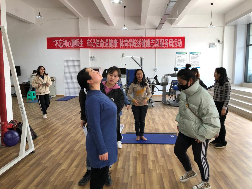 体育学院以“不忘初心惠师生、牢记使命送健康”志愿服务活动为载体,由该学科博士团队领衔,以运动康复专业员工为主力军,面向全校教职员工生,开展以身体成分测量与分析,身体形态分析,SFMA选择性功能动作筛查、FMS功能动作筛查,国民体质测试等健康筛查;服务模式为一对一指导与分析。主要解决的是教职员工长期伏案工作、颈椎病、姿势异常、腰肌劳损以及运动损伤等常见问题。此次活动的开展,让广大师生对自身的健康水平、健康生活方式的普及,以及影响健康的主要因素得到全面了解。
