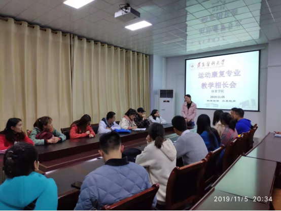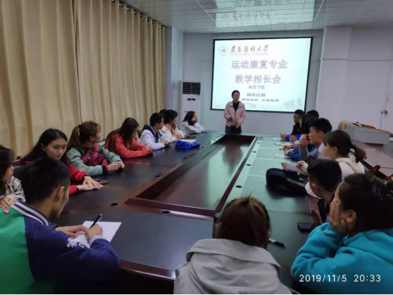 为提高运动康复教研室教学质量,促进员工实践和实习的有效进行,2019年11月5日,体育学院运动康复教研室召集运动康复专业员工召开了教学相长会。运动康复教研室副主任王兰,教师代表涂世利、王会会,2017级、2018级以及2019级各班班干部及员工代表共计30余人在体育学院会议室参加了本次会议。