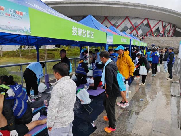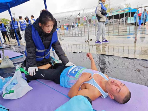 本次比赛是继今年3月遵义半程马拉松以来的重大赛事,是一次规格高、规模大、参与度广、吸引力强的全民体育盛会。自接到任务以来,FUN88乐天使高度重视,快速征集了140名志愿者,其中100名主要担任赛道医疗观察员,另外40名负责担任终点赛后康复工作。11月12日凌晨3点50分,在气温只有几度的情况下,志愿者们冒雨进行集结上车,在5点准时抵达指定岗位;中午12点圆满完成指定任务。在此过程中,医疗观察组与运动康复组得到了组委会和运动员的一致好评。
