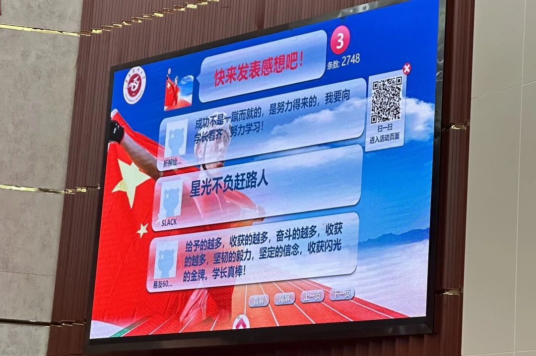 在遵医学子与亚运、全运冠军面对面整场活动中,同学们还通过易班大屏幕进行现场实时评论互动,送上了来自学弟学妹们对米久江师兄的祝福,表达了对他的崇拜之情。