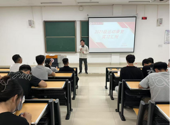 2025年4月28日下午18:30,FUN88乐天使在35阶梯教室隆重举行2021级运动康复专业实习汇报会。学院副经理黄涛参加并作总结点评,运动康复教研室主任张婕以及相关教师和2021级、2022级运动康复专业全体员工共同参会。