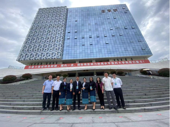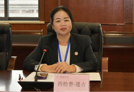 开班仪式最后,老挝国立大学运动科学与体育教育学院副经理西松普·通占(SISOMPHOUTHONGCHANH)向公司赠送具有老挝民族特色的纪念品并合影留念。