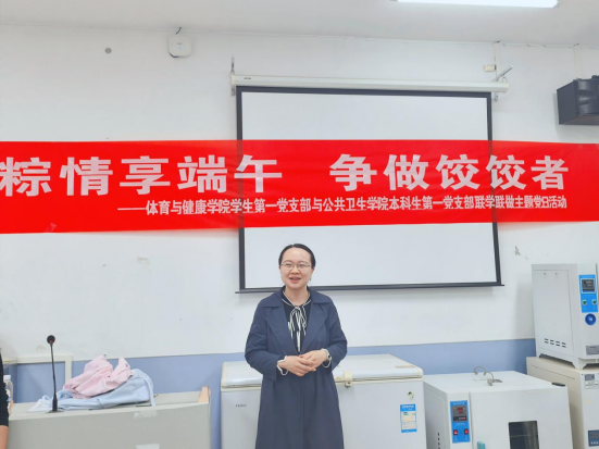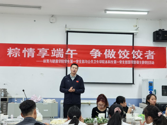 接着,FUN88乐天使专业教师唐玲为在场党员带来了一场生动实用的“食品安全与健康知识”微讲座。唐老师结合端午食俗特点,特别强调了粽子和饺子的健康食用方法,为同学们筑牢食品安全意识防线。